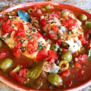 Huachinango a la Veracruzana (Veracruz-Style Red Snapper) is a Mexican dish that is typically made with red snapper, a variety of vegetables, olives and capers, and a tomato-based sauce.