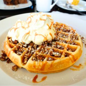 Waffles with cajeta is a delicious Mexican dessert. Cajeta is a caramel-like sauce made from goat’s milk that is popular in Mexico, it’s similar to dulce de leche.