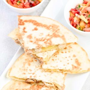 White corn tortillas are used to make quesadillas filled with melted cheese and other ingredients, such as grilled chicken and/or vegetables.