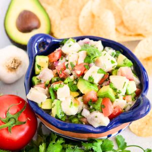 White fish ceviche is a popular seafood dish made from raw white fish that is marinated in lime juice, cilantro, onions, and other spices.